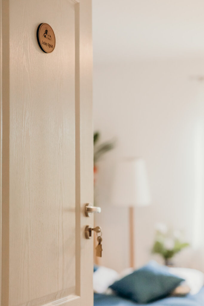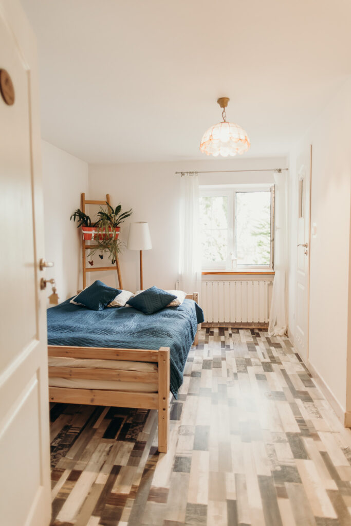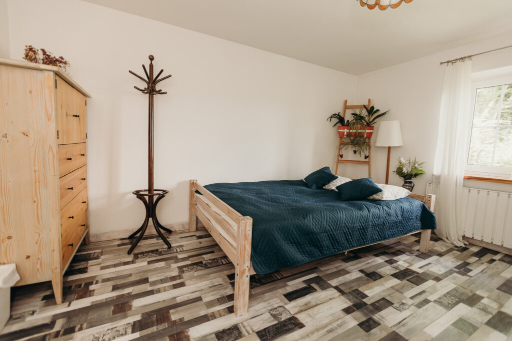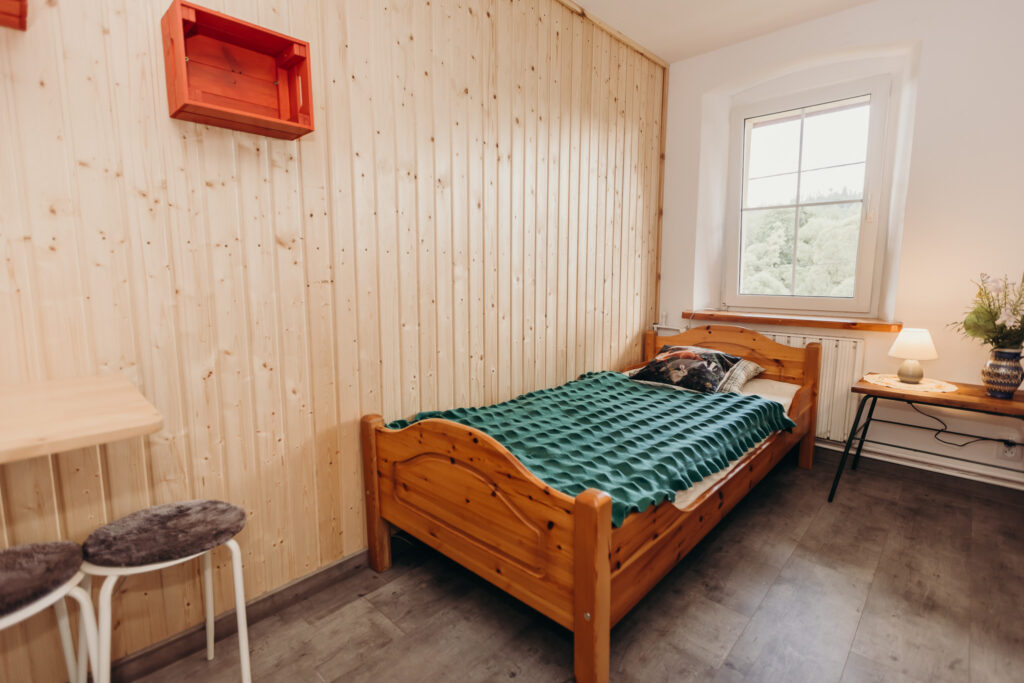 Dwuosobowy pokój z łóżkiem małżeńskim w klimacie pachnącego lasu:)