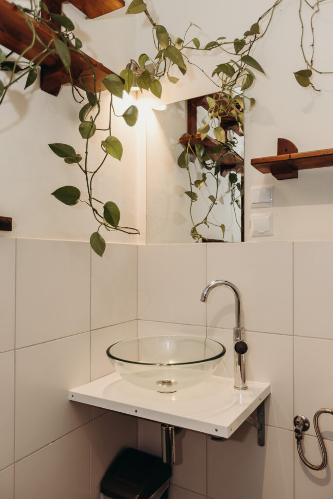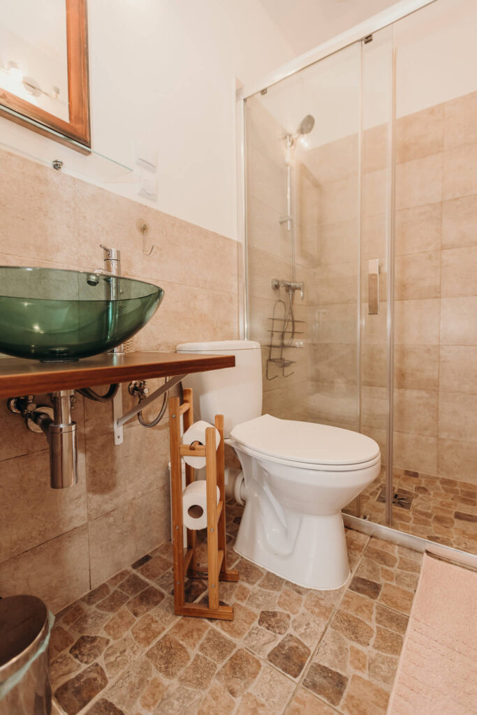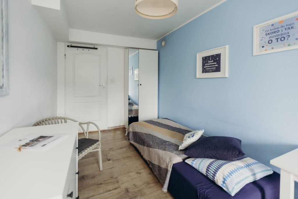 Odrębne studio dla osób ceniących prywatność, położone nad salką fitness, składające się z saloniku z kuchnią, sypialni, z własną łazienką z prysznicem i osobną toaletą.